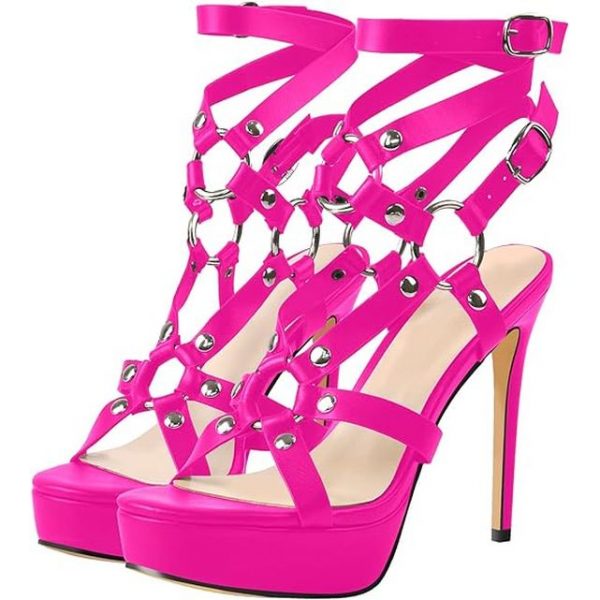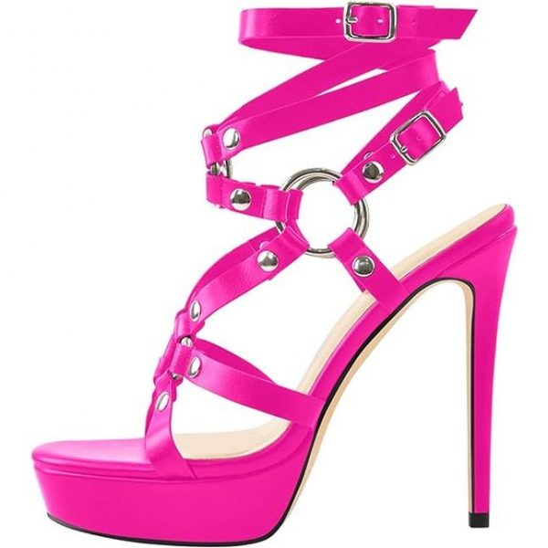 Sandali sexy da donna con tacco a stiletto da 14cm e plateau da 4cm.