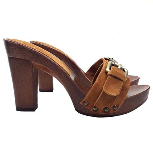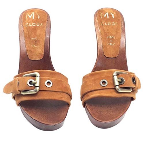 Tomaia in camoscio color marrone con fibbia effetto vintage by myclogs