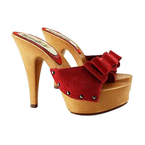 base effetto legno mou, tacco alto 13 cm e plateau da 4cm